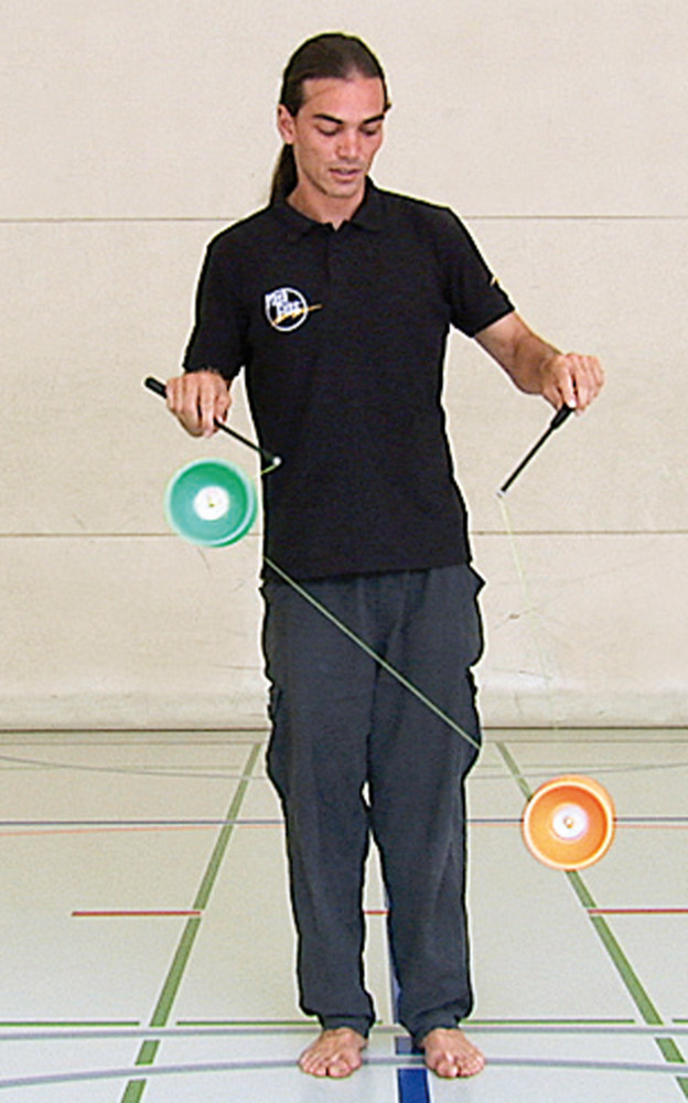 Durante questo esercizio gli allievi si cimentano con due diabolo e una corda. L'obiettivo è...