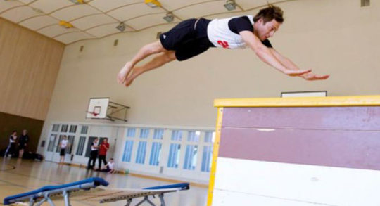 Diese Übung ist ein wichtiger Zwischenschritt für den Aufbau eines Salto vorwärts. Die Sportler lernen...