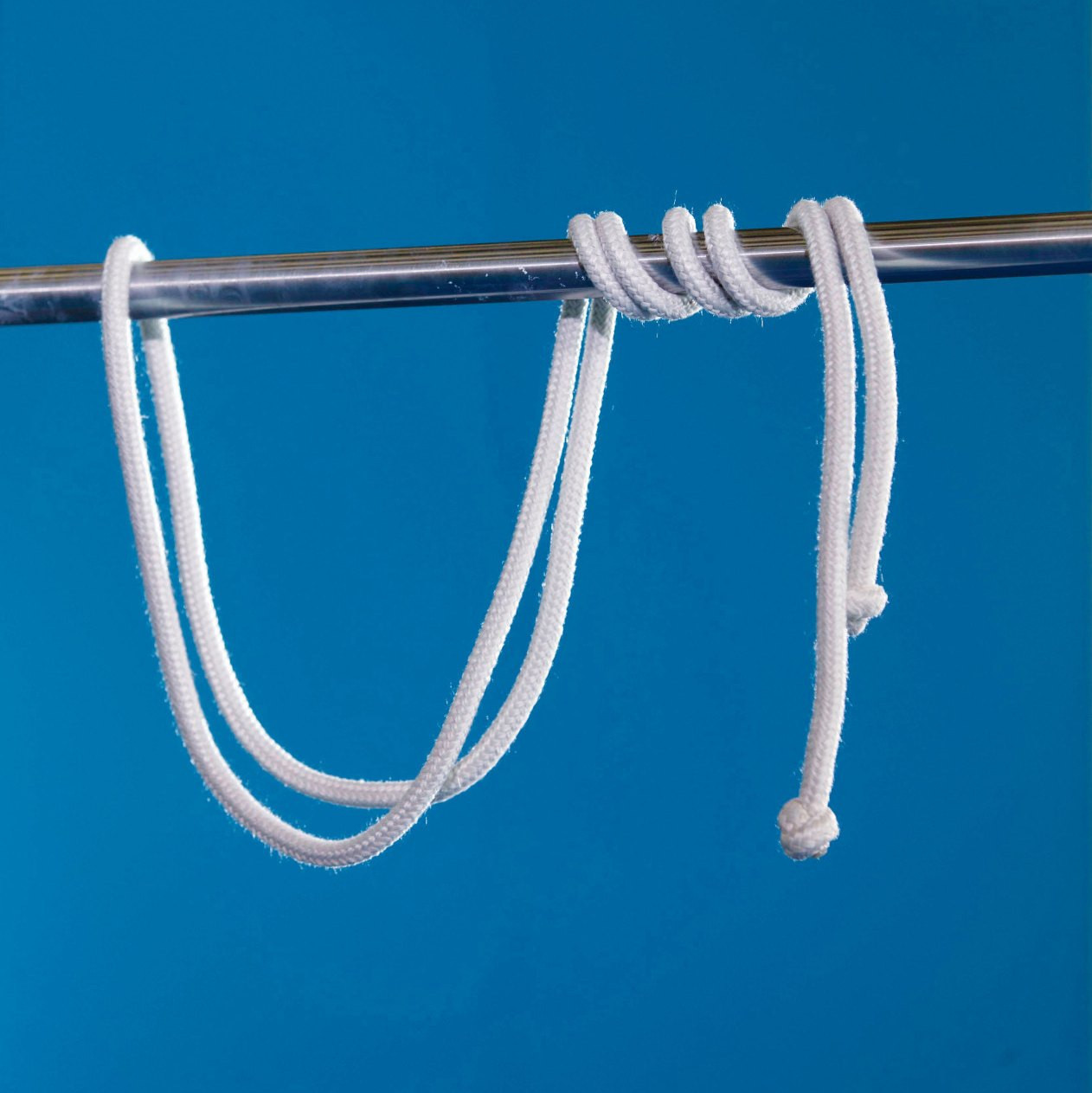 Seilsicherung: Seilende von hinten über die Stange legen und um die Stange wickeln. Die Turnerin legt während der Übung eine Hand auf das Seil.