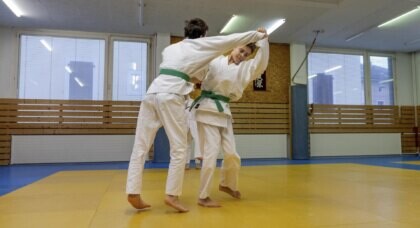 Den Partner mit demselben Kumi-kata vor- oder rückwärts werfen.
