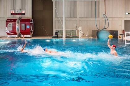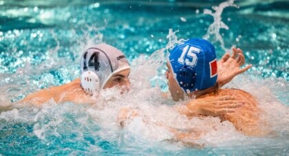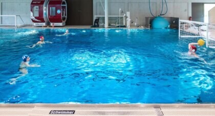 Durch Drehungen nach einem Pass festigen die Spielenden die Stabilität im Wasser. Der Fokus liegt...