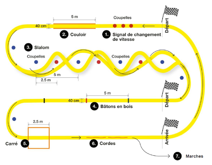 Les enfants effectuent plusieurs fois d’affilée le parcours afin que les moniteurs et enseignants puissent évaluer les compétences des élèves et noter leurs observations sur une fiche d’évaluation («Protocole d’évaluation», pdf).