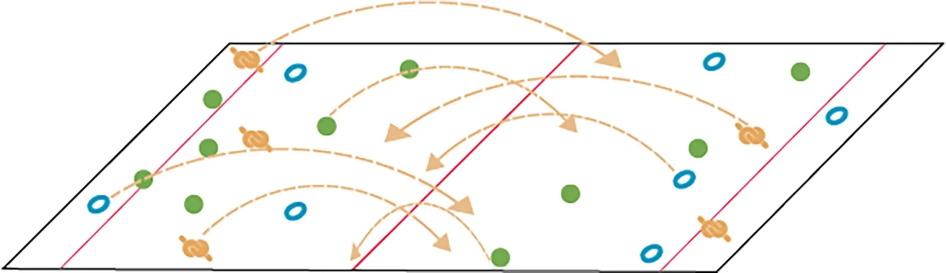 Conseil: Détermine l’intensité d’un exercice en jouant sur la taille des groupes (p. ex. équipes de deux ou de trois) et la distance (p. ex. terrain de football). Pour entraîner cette forme caractéristique, choisis des formes d’entraînement avec de petits groupes et peu de pauses.