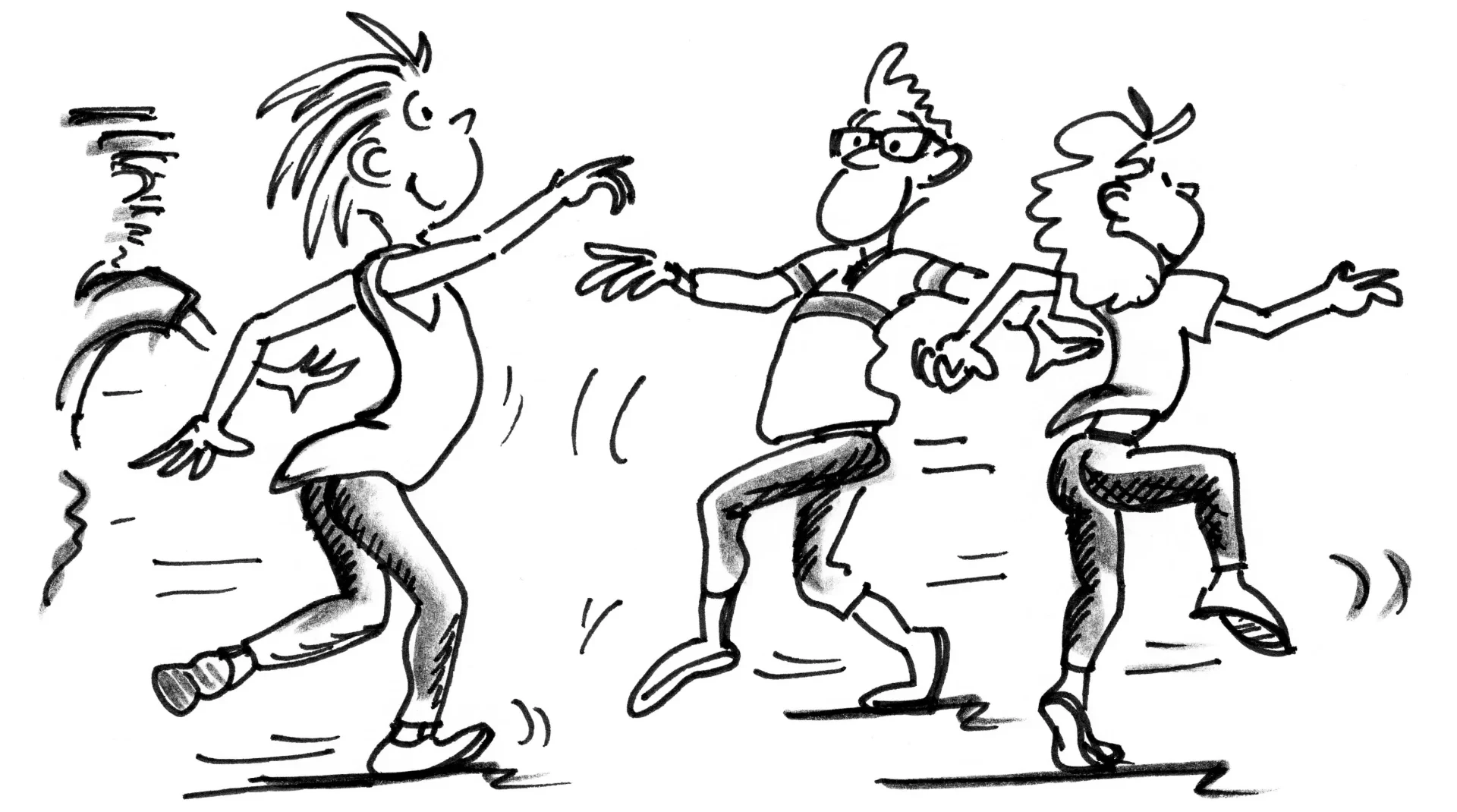 En petits groupes: chacun-e choisit un état émotionnel (p. ex. joie, colère, surprise) et l’insuffle dans la danse, sans parler. Les autres tentent de reconnaître l’émotion en question.