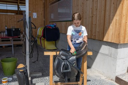 Équitation – 8. Avoir une attitude respectueuse et responsable vis-à-vis de l’environnement, des autres personnes et du matériel Nettoyage et propreté du matériel (dès F1)