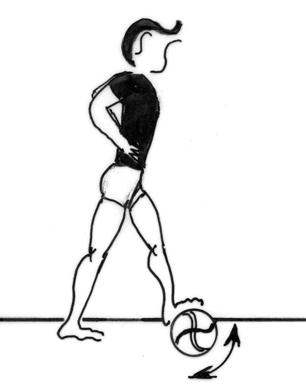 Poser la plante du pied sur le ballon, tendre le genou et presser le talon vers le sol.