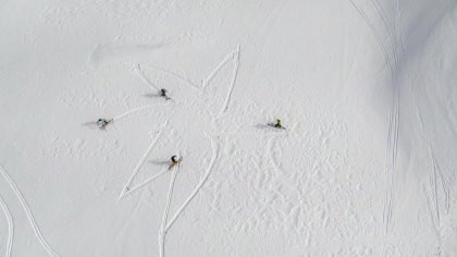 Die Jugendlichen lernen, in flachem und sicherem Gelände Spitzkehren zu laufen. Die Jugendlichen lernen, in flachem und sicherem Gelände Spitzkehren zu laufen.