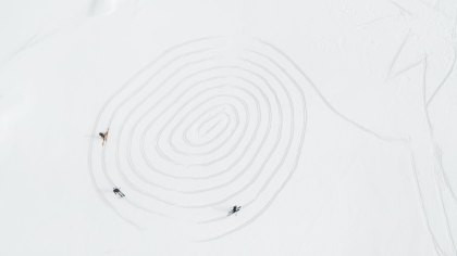 Skitouren – Mit Freude den Schnee entdecken und sich spielerisch auf den Tourenski bewegen Bild mit Skiern zeichnen (Spiele im Schnee)