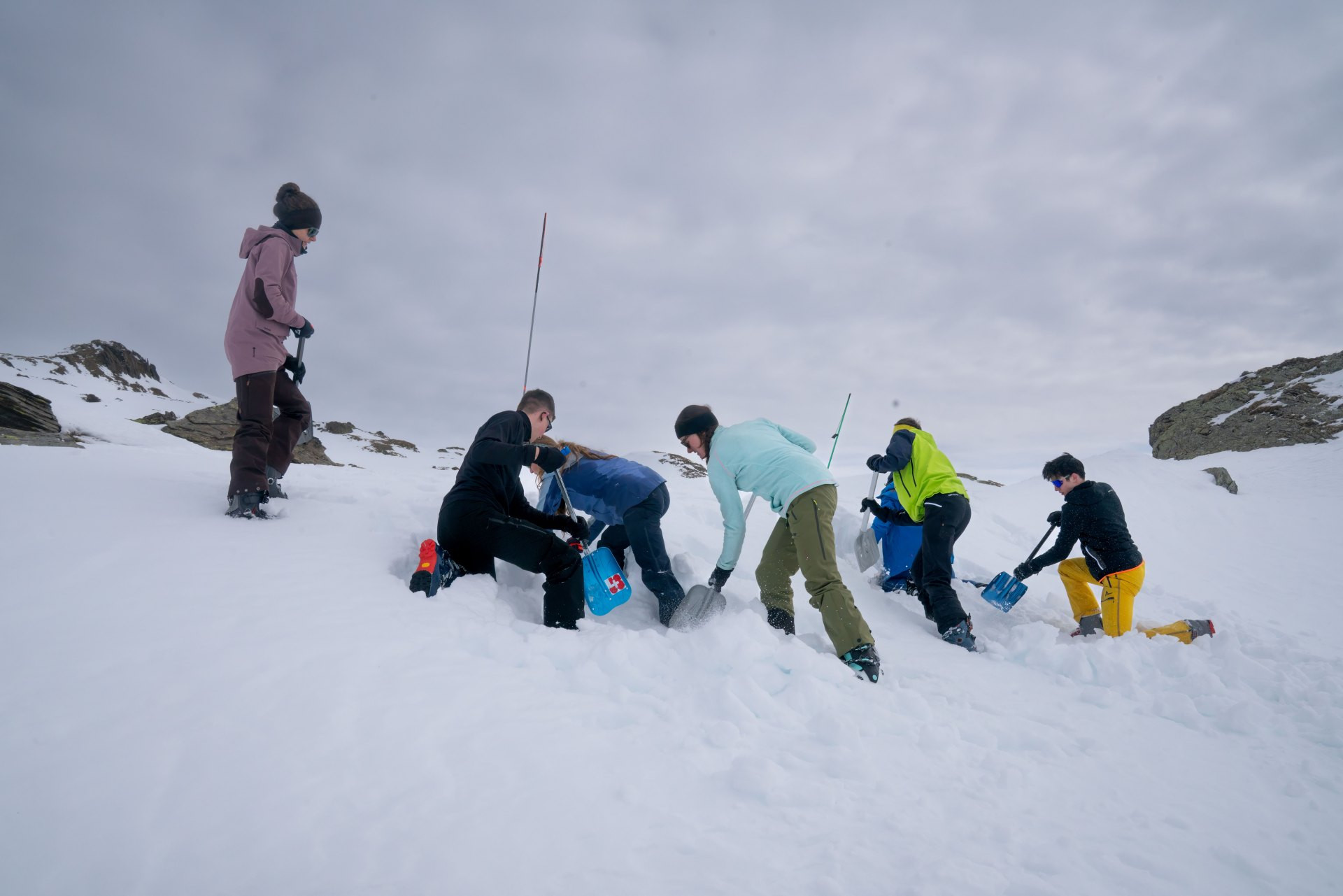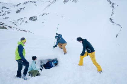 Skitouren – In unvorhergesehenen Situationen Unterstützung leisten Sondieren (Lawinenrettung Punktsuche)