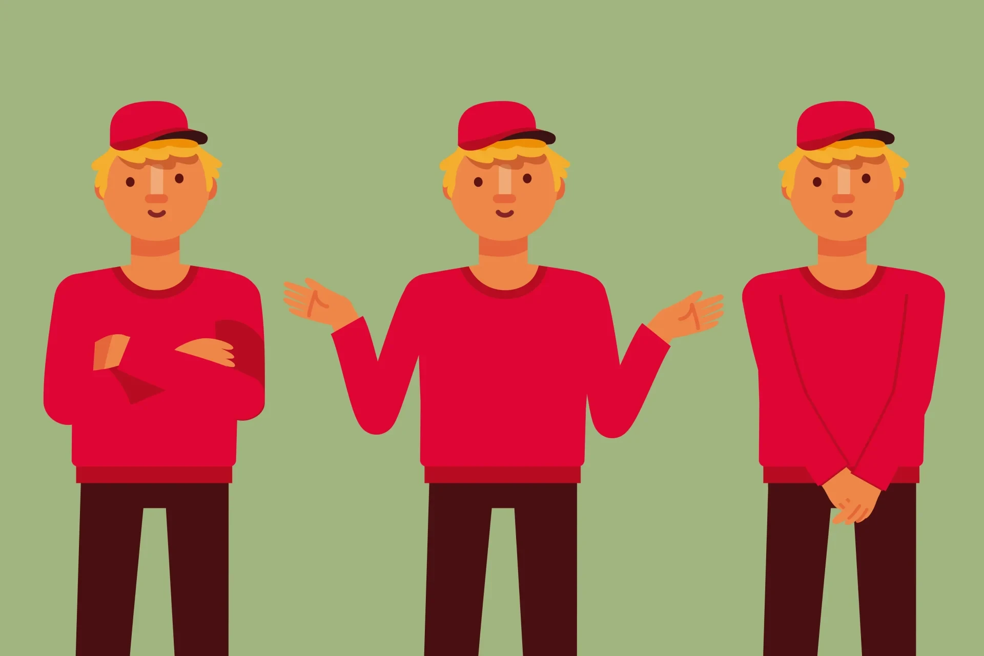 • Privilégie les gestes où tes paumes sont tournées vers le haut, car il s’en dégage une impression d’ouverture, d’amabilité et de cordialité plus forte que quand les paumes sont dirigées vers le bas. Pour en savoir plus, regarde la conférence TED4 d’Alan Pease, expert en langage corporel.
