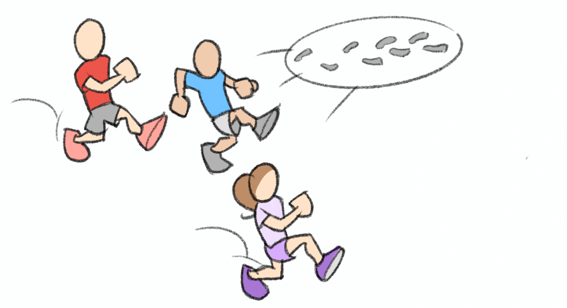 Cantare con i bambini la canzoncina dei piccoli passi e camminare con una determinata andatura. I bambini scelgono il passo successivo. Osservazione: Melodia «Mulberry Bush»,