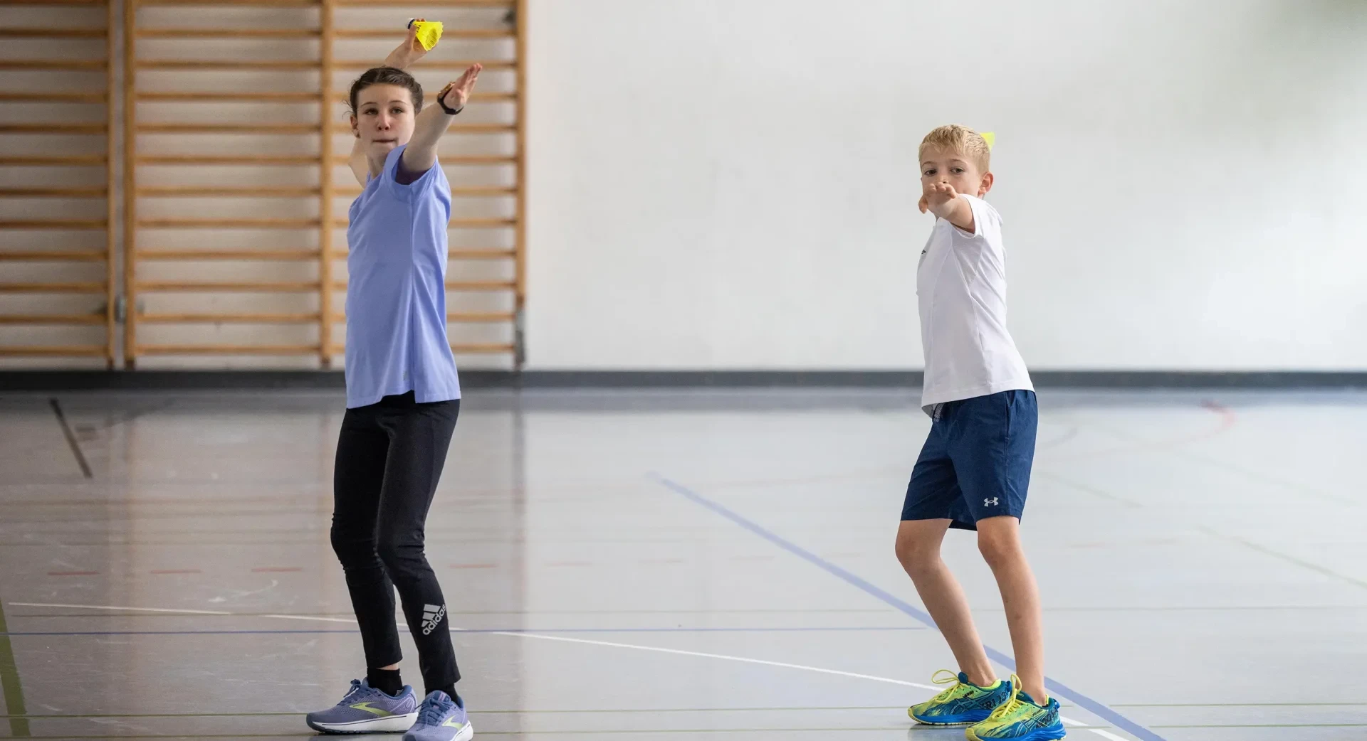 Conseil: Entraîne les mouvements très rapides sur de courtes distances et durées ainsi qu’avec des poids de lancer plutôt légers. Aménage des pauses entre les séries. En règle générale, il faut compter une minute de pause par dix mètres de course. Les enfants ont besoin de récupérer complètement pendant les pauses. Choisis des groupes et des terrains adaptés, comme des équipes de six à huit sur un terrain de volleyball (18 mètres).