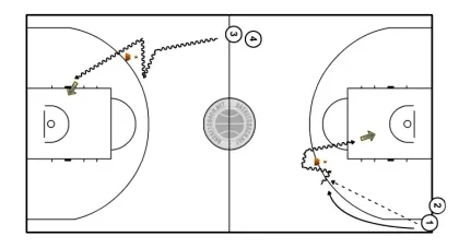 Basketball – Construire l’attaque adaptée à la situation selon l’objectif fixé 2:2 Jeu avec dribble vers le panier