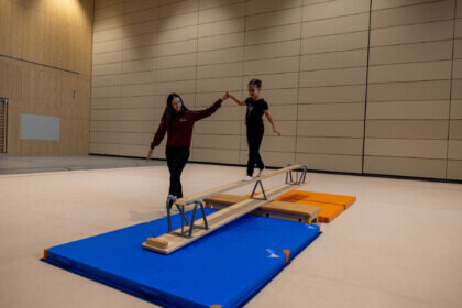 Les gymnastes effectuent des sauts variés au sein d’un circuit.