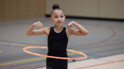 Tester des positions propres à la gymnastique rythmique, se maintenir en équilibre dans ces positions...