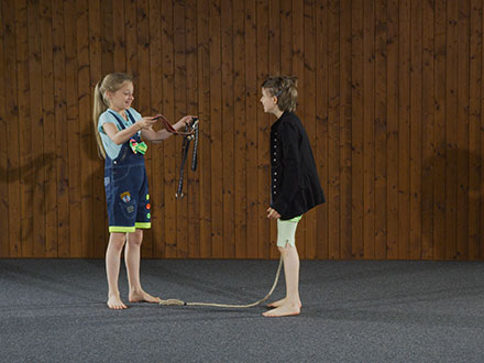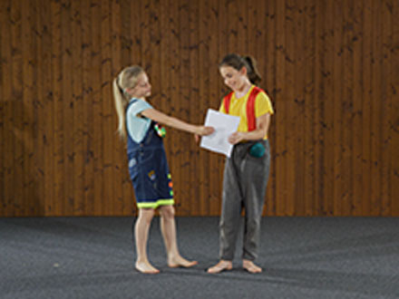 Diese Nummer wirkt schnell spektakulär: Eine Schülerin liegt, die andere steht. Sie fassen sich jeweils...