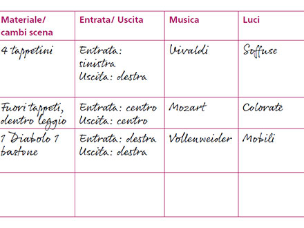 Ein Übersichts-Tableau hilft hinter der Bühne allen Beteiligten (Regie, Helferinnen, Sound- und Lichttechnik, Musiker, Artistinnen)...