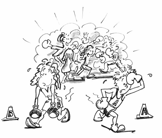 Questo esercizio richiede agilità (movimenti di schivata) e un certo senso tattico per assolvere contemporaneamente...