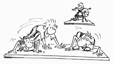 In questo esercizio gli allievi sono seduti schiena contro schiena e devono cercare di tirare...
