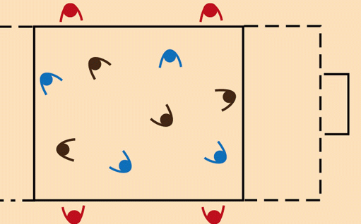 In questo esercizio gli allievi imparano il gioco di squadra. Per vincere bisogna riuscire a...