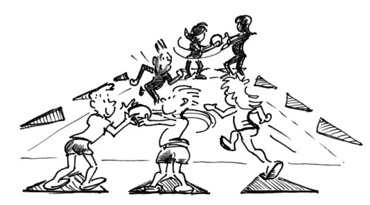 Questo esercizio, eseguito a gruppi di tre o quattro, permette agli allievi di rilassarsi.