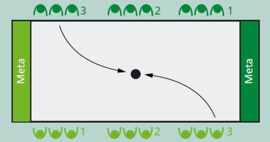 Due squadre si affrontano durante questo esercizio e devono progredire sul campo per segnare dei...