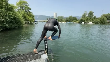 Le «dock start» est une technique pour démarrer le pumpfoil à partir d'une plateforme fixe,...