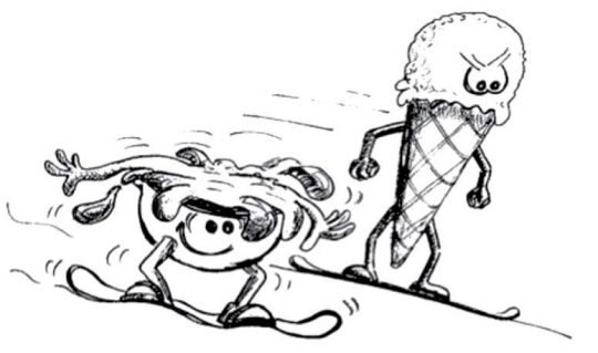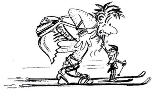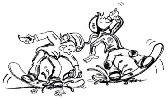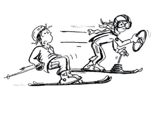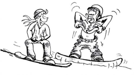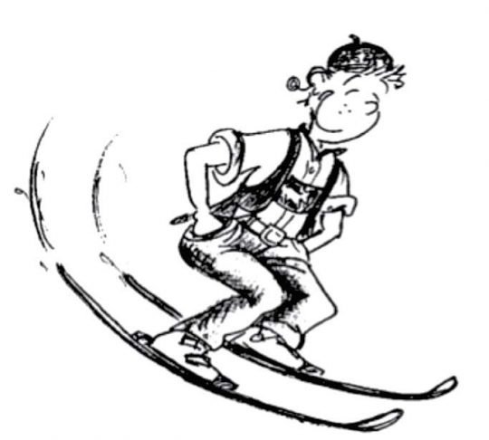 Grâce à ces deux images, les enfants apprennent à varier l’écartement des jambes en ski...