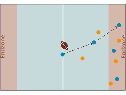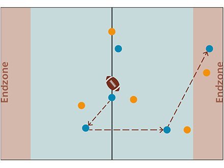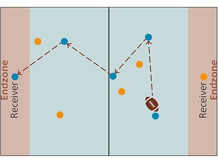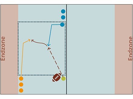 Dans cet exercice, les élèves essaient atteindre la zone d'en-but en se faisant des passes....