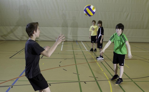 Par deux, les élèves améliorent leur capacité de réaction au cours de cet exercice.