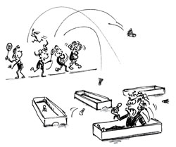 Dans cet exercice, les élèves expérimentent les différentes trajectoires du volant. Ils essaient d'attraper le...