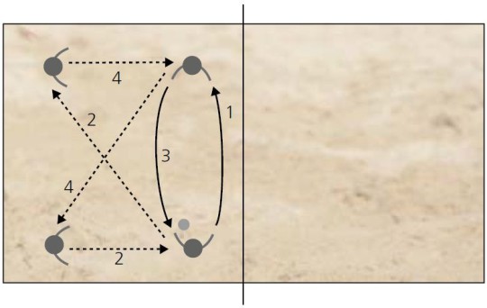 Cet exercice invite les enfants à se concentrer exclusivement sur les déplacements spécifiques au beach-volley....