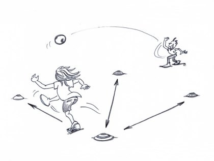 Les enfants et les jeunes changent de direction, courent pour se placer derrière la balle...