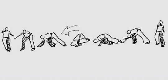 Während dieser Übung nutzen die Capoeiristas mit ihren Bewegung auf dem Boden den Raum möglichst...