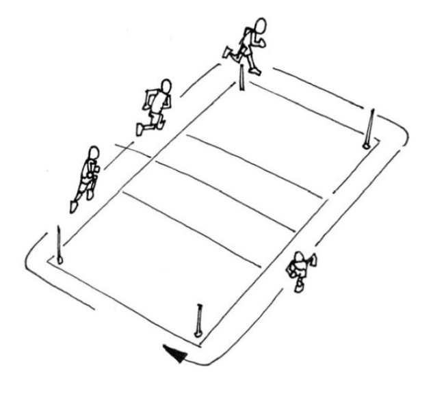 Dieses Fangspiel in Paaren eignet sich dazu, Ausdauer, Schnelligkeit, Orientierung und Reaktion zu üben.