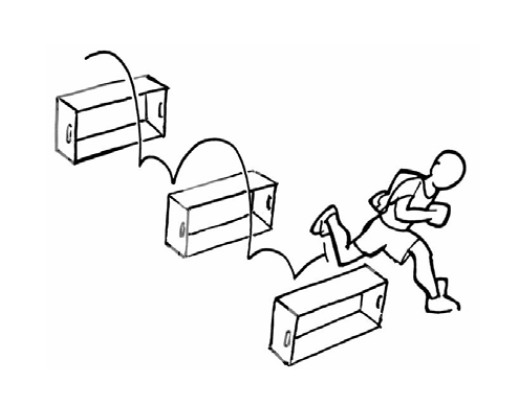 Die Lernenden überlaufen in diesem Test mehrere hüfthohe Hindernisse rhythmisch auf den Fussballen mit aktivem...