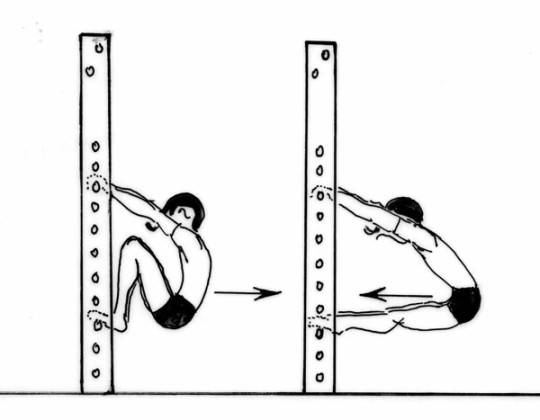 Per questo allungamento dinamico gli allievi si appendono come scimmiette alla spalliera e stirano le...