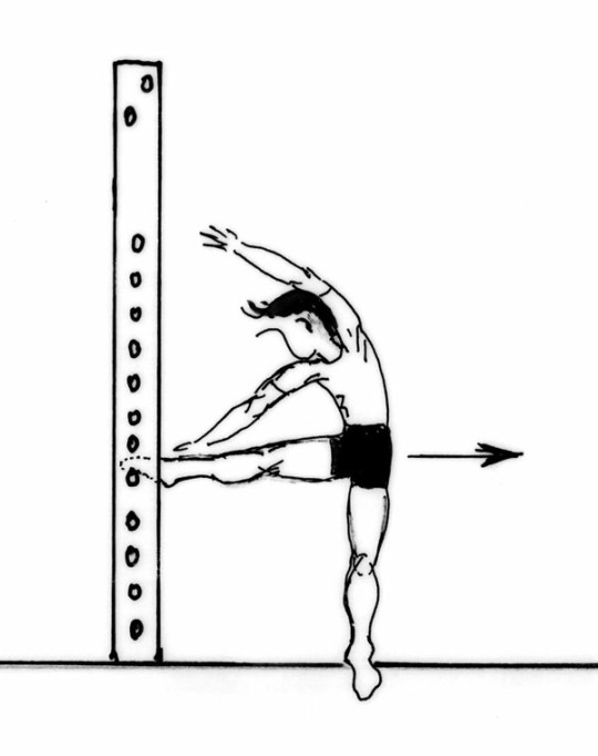 Con l’aiuto della spalliera si allungano i muscoli interni della coscia in una posizione statica....