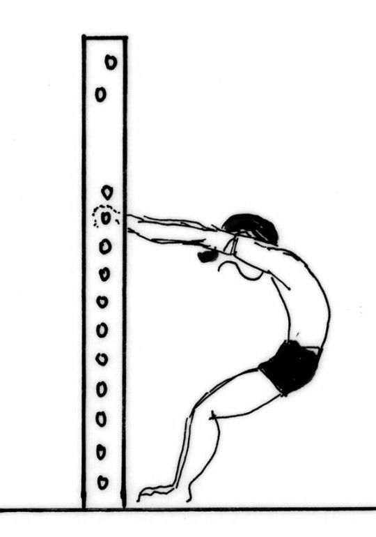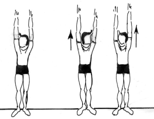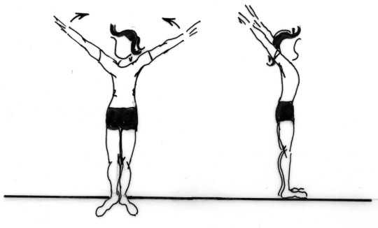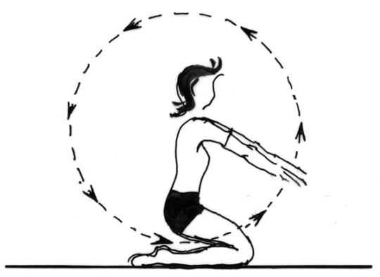 Disegnare un grande cerchio indietro mantenendo le braccia estese. Un esercizio che premette di allungare...