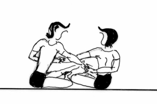 Due compagni sostengono un terzo allievo che si lascia cadere in avanti. Questo esercizio allunga...