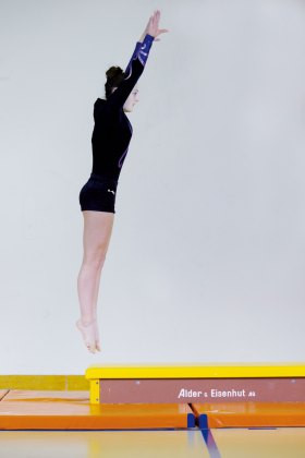 Je höher die Turnerin springt, desto mehr Zeit bleibt ihr, um die Bewegung in der...