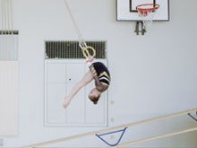 Die Drehung an den Schaukelringen wird am «toten Punkt» ausgeführt und erfordert eine gute Körperspannung....
