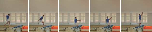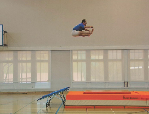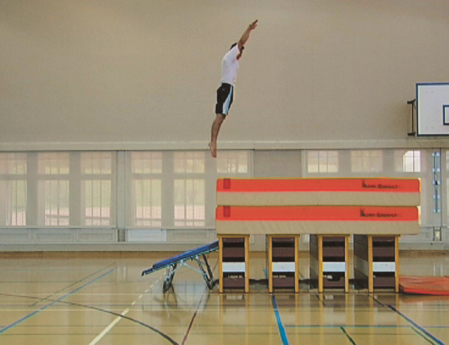 Durante questo esercizio, i ginnasti imparano ad eseguire una rotazione completa sull’asse trasversale.