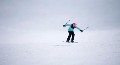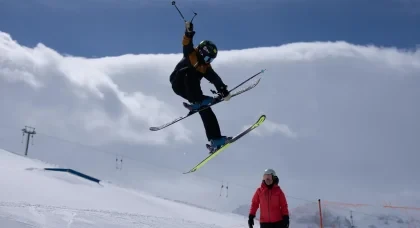 Die Kinder und Jugendlichen lernen, während dem Sprung einenoder beide Ski zu graben.
