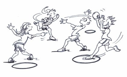 Die Kinder und Jugendlichen sammeln vielfältige Erfahrungen im Fangen, im Werfen und im geschickten Zusammenspiel....
