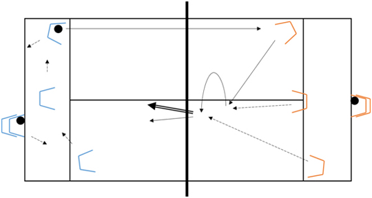 Die Seitwärtsbewegung und Abwehrbewegungen werden in dieser Übung trainiert.