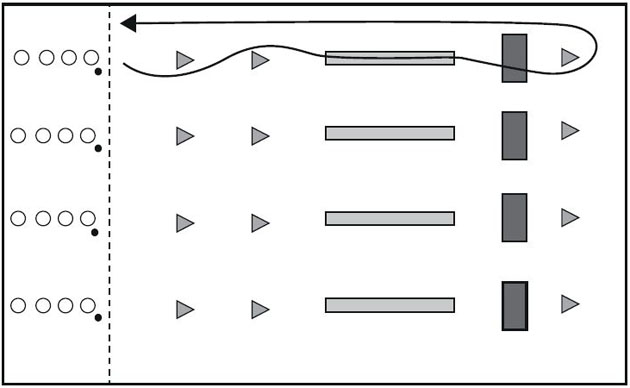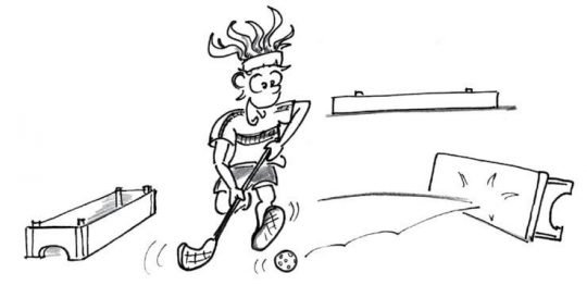 Schnell laufen und gleichzeitiges Orientieren im Raum unter erschwerten Bedingungen sind Ziele dieser Übung.