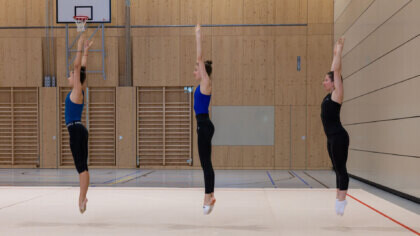 Die Gymnastinnen und Gymnasten springen mit einer schnellen, reaktiven Bewegung explosiv ab. Nach einer koordinierten...