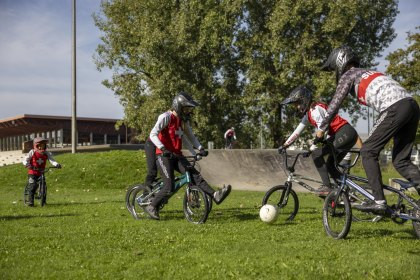 Les déplacements en groupe sont fréquents en BMX. Les enfants et les jeunes apprennent à se positionner avec discernement et à s’imposer de façon respectueuse, sans jamais perdre de vue les règles. En groupe, ils expérimentent la coopération, communiquent et goûtent ensemble aux joies du sport.