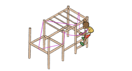 In questo compito di apprendimento, i bambini si arrampicano su una struttura da arrampicata tessendo...